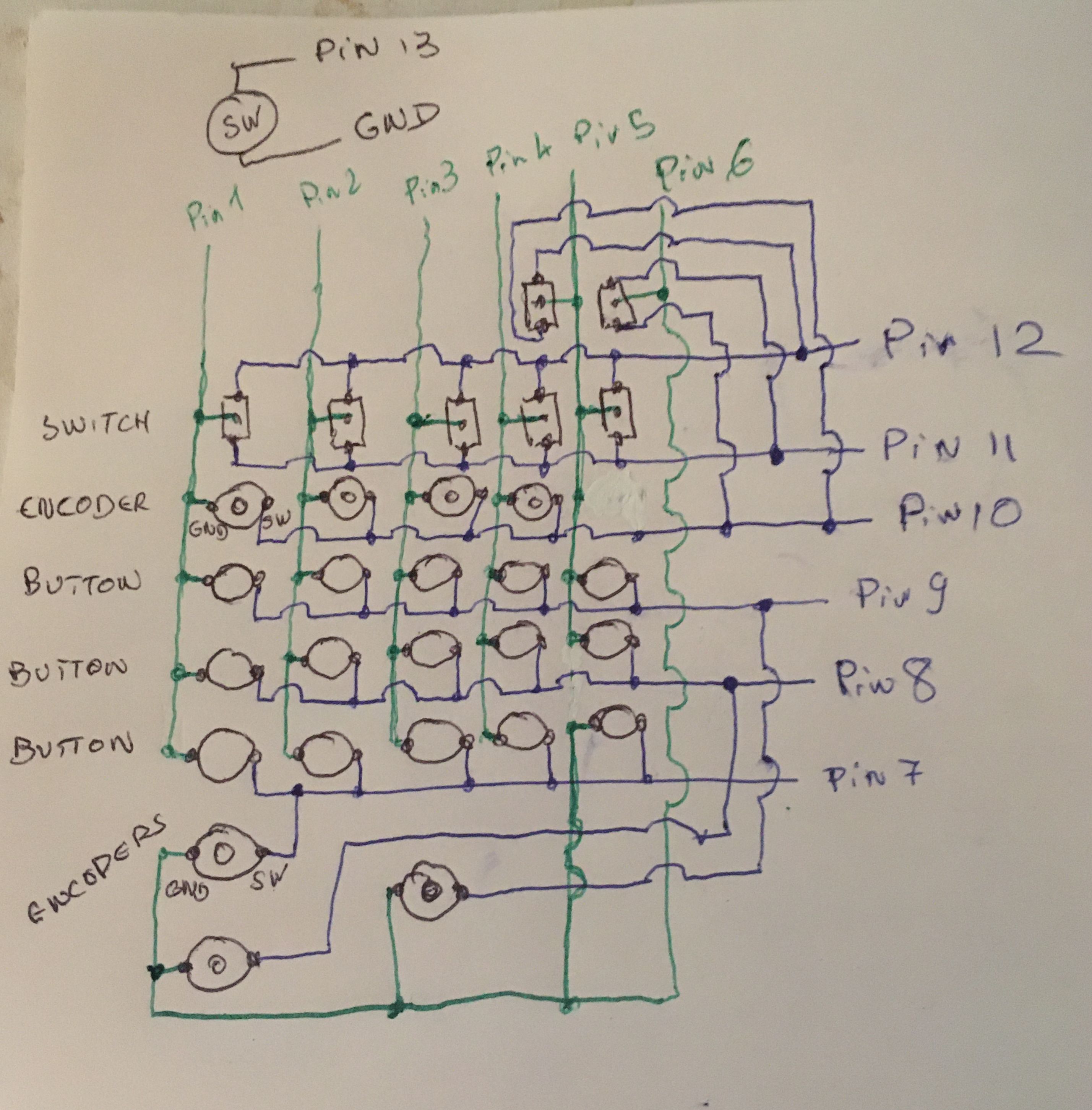 Oh, I didn't realize they needed to be in the button matrix as well! Does the "Encoder CLK" pin not handle the push button part of the rotary encoders?